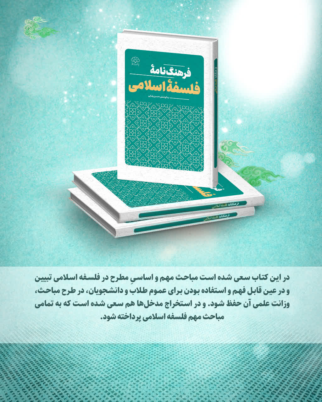 کتاب «فرهنگ‌نامه فلسفه اسلامی» به کوشش حسن رضایی، در ۸۹۸ صفحه و با شمارگان ۱۰۰۰ نسخه منتشر شده است. این کتاب شامل نزدیک به ۳۰۰ مدخل و موضوع اصلی فلسفه اسلامی است که به همت دانش‌آموختگان فلسفه و کلام نگاشته شده‌اند. هدف آن تبیین مباحث مهم و اساسی فلسفه اسلامی به شیوه‌ای قابل فهم برای طلاب و دانشجویان، با حفظ وزانت علمی، و ارائه دسترسی آسان به موضوعات مرتبط به ترتیب حروف الفبا است.