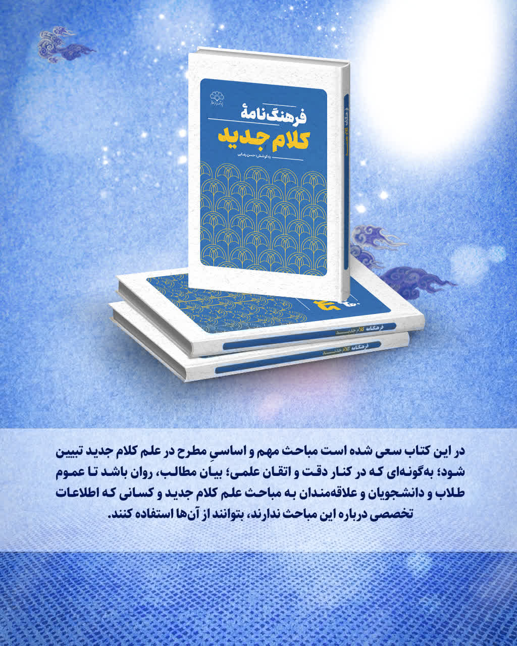 کتاب «فرهنگ‌نامه کلام اسلامی» که به کوشش حسن رضایی در ۴۰۳ صفحه و شمارگان ۱۰۰۰ نسخه منتشر شده، سعی دارد مباحث مهم کلام اسلامی را به زبانی قابل فهم برای طلاب و دانشجویان ارائه دهد و در عین حال وزانت علمی خود را حفظ کند. این کتاب شامل نزدیک به ۹۰ مدخل و موضوع اصلی کلام اسلامی است که به ترتیب حروف الفبا تنظیم شده و دسترسی آسان به مطالب را فراهم می‌آورد.
