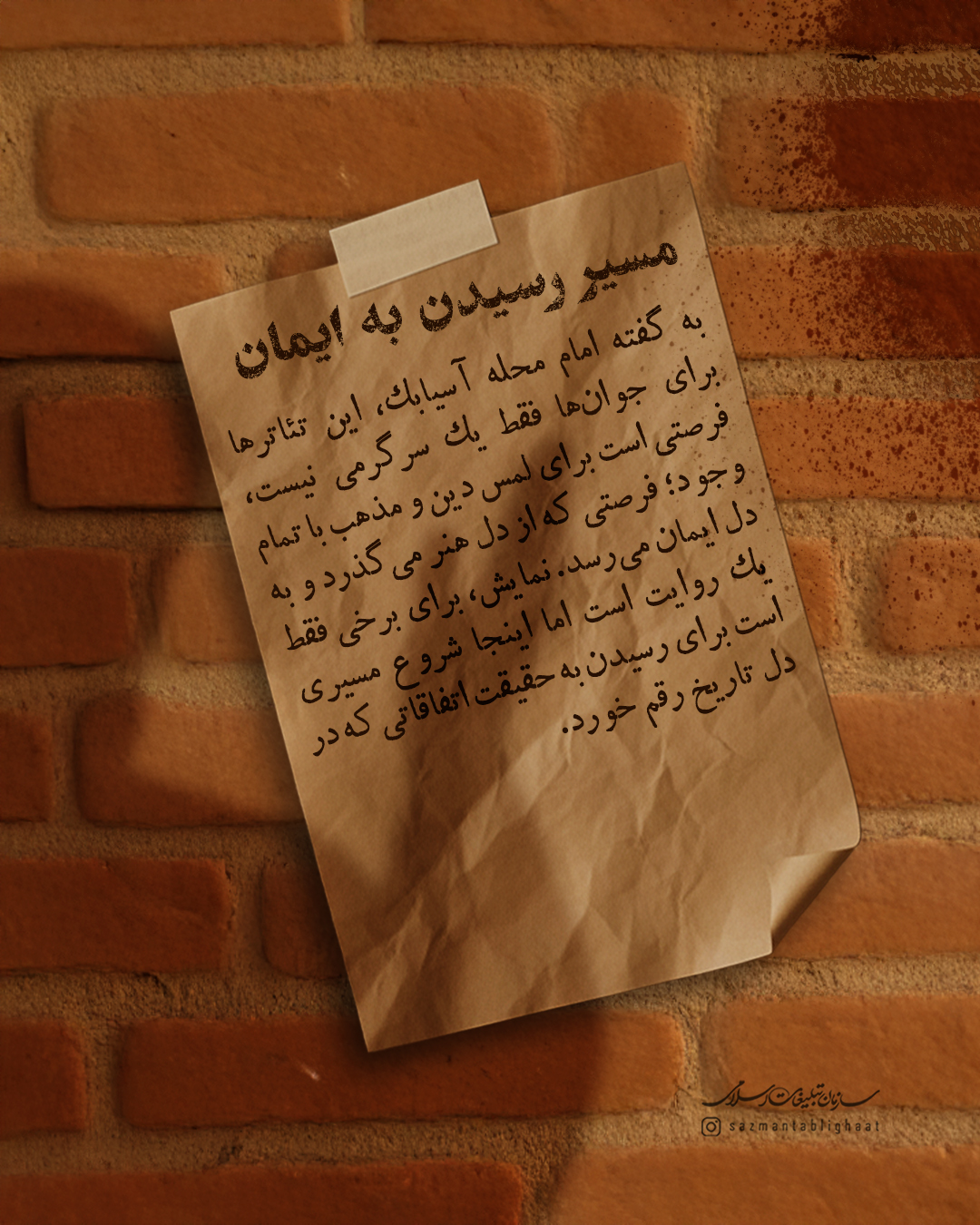 به گزارش روابط عمومی سازمان تبلیغات اسلامی، حجت‌الاسلام «محمود گل‌محمدی» امام محله مسجد جامع آسیابک در شهر زرندیه استان مرکزی است. او که از نوجوانی به ادبیات و نمایشنامه‌نویسی علاقه‌مند بود، با نوشتن نمایشنامه و اجرای نمایش در مسجد تجربه‌ی متفاوتی برای اهالی این محله فراهم کرده است. اتفاقی که منجر به رونق مسجد و حضور فعالانه مردم، خصوصا جوانان و نوجوانان، در مسجد شده است.