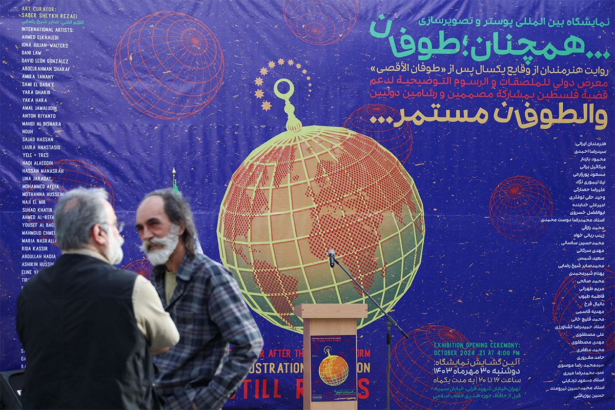 نمایشگاه بین المللی پوستر و تصویر سازی «...همچنان؛ طوفان» روایت هنرمندان از وقایع یک‌سال پس از طوفان الاقصی دوشنبه ۳۰ مهر ۱۴۰۳ به مدت یک ماه در حوزه هنری افتتاح شد.