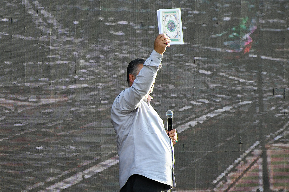 محفل قرآنی خادم الرضا (ع) به یاد شهید جمهور، آیت الله سید ابراهیم رئیسی، عصر پنجشنبه ۲۵ اردیبهشت ۱۴۰۴ با حضور عوامل قرآنی برنامه محفل، حجت الاسلام محمد قمی رئیس سازمان تبلیغات اسلامی و اقشار مختلف مردم در بیرجند برگزار شد.